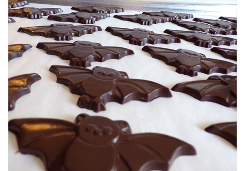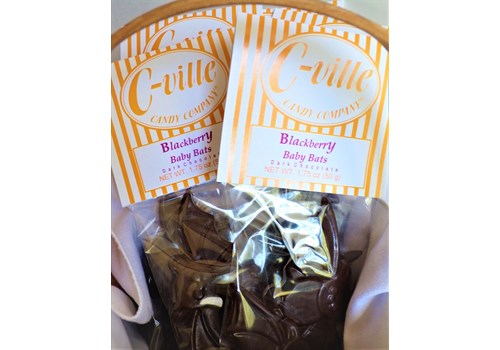 Blackberry Baby Bats - Cute little bats!! Molded natural blackberry flavored semi-sweet dark chocolate.
