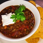 FROZEN- a long, slow simmer results in a tender, thick and hearty chili.