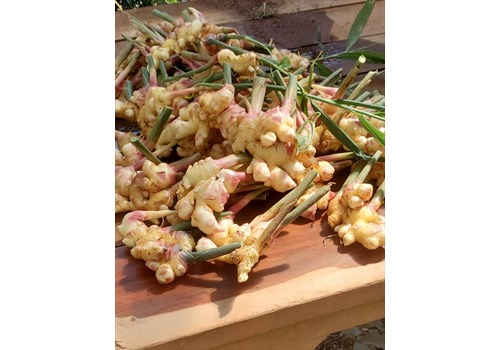 Freshly dug Ginger without the tops grown here at our farm using only Organically approved methods, no plastic mulch and no CAFO fertilizers. Fresh ginger is very high in Gingerol compounds.