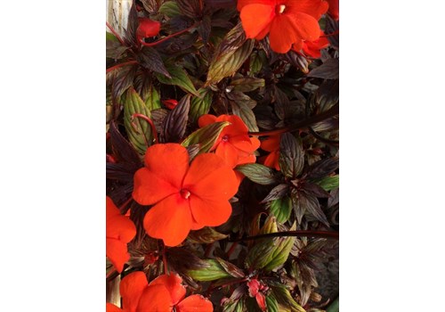 Sunpatiens Bright Neon Orange with Bronze Leaf 12 to 15 inches full sun to partial shade