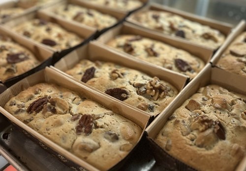 Freshly baked, fruitcake with dried (not candied) fruit!