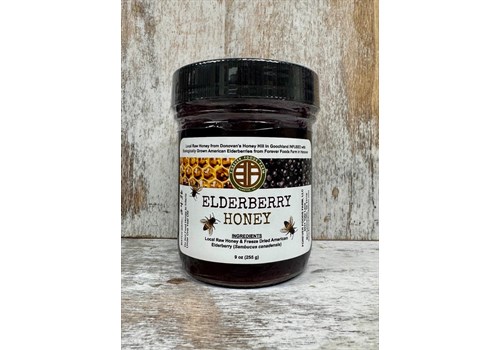 Drizzle it, stir it, savor it! We combine raw honey and freeze dried elderberry powder to create this absolutely delicious elderberry infused honey. This dark purple honey is shelf stable and contains all the benefits of raw honey and elderberry. Our elderberry honey is made with Donovan's Honey Hill's Raw Honey from Eastern Goochland County and Forever Foods Farm's ecologically grown (beyond organic) American Elderberries (Sambucus canadensis) in Hanover County. Available in 9 oz. jars.