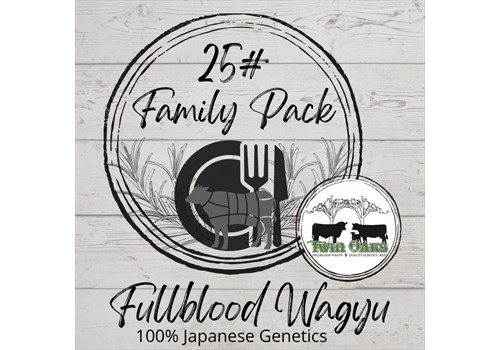 Our 25# Family Pack will be a variety of items that all total 25 lbs in weight! Contents of each pack will vary. A 25# Family Pack will include something like: (10) Packs of Ground Beef, (2) Packs of Shaved Steak, (6) Steaks [mix of our eight steak cuts], (1) Bone Cut & (1) Large Cut. The 'Fullblood Wagyu' animal for this item is a 100% genetic make-up of Japanese Wagyu genetics raised at our farm!