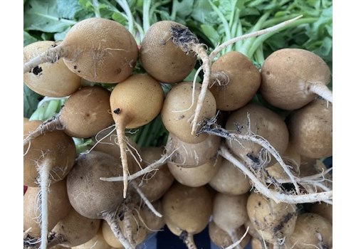 These radishes are also known as yellow radishes. They are sweet and crisp and are great roasted or in salads.