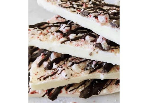 Enjoy crushed peppermint enveloped in a creamy, minty white bark then drizzled with Ghirardelli dark chocolate! Makes a yummy gift or special addition to your get togethers!