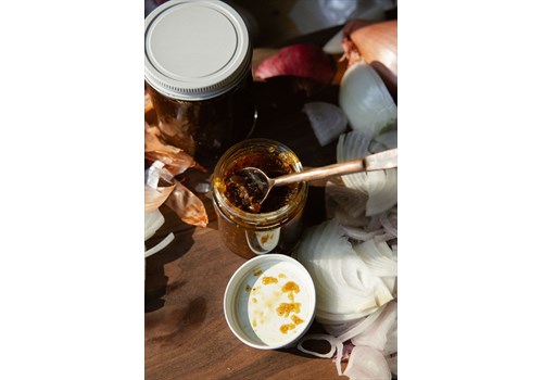 This spread captures the natural sweetness and savouriness of the onion. Virginia onions are cooked down with sugar, vinegar, and spices until on the verge of candied, giving a thick, spreadable consistency to the final product. Mustard seeds lend a flavorful bite, while black pepper gives a lasting tingle on the tongue. This is a perfect match for a sausage or hot dog or paired with a sharp cheddar either on a cheese board or a sandwich. Also great mixed into tuna or egg salad! Shelf-stable.