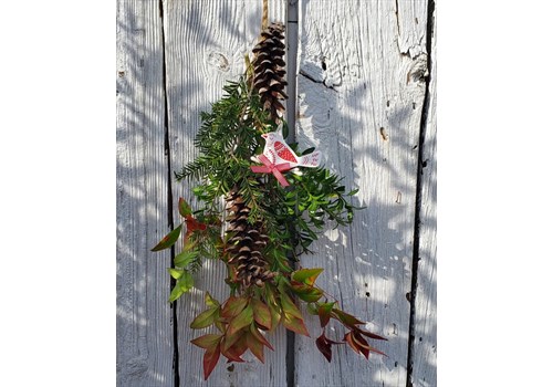 Holiday Door Swag made with fresh from our farm English Boxwood, Eastern Hemlock, Pine Cones, and more. Untreated and unpainted.