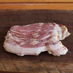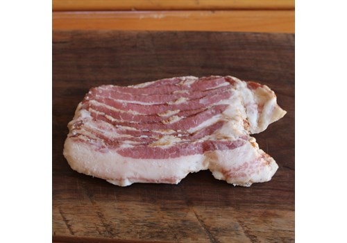This is our regular bacon. Our pigs are raised in the pasture and forest, with large areas to roam, and are fed supplemental grains & seeds which are soy-free, corn-free, non-GMO, and chemical-free. The pigs are organically raised & fed (the feed is tested as beyond organic, but not Certified). The farmer raises his own piglets, from farrow to finish. No vaccines or antibiotics. Spring Creek Meadows Farm is owned by an Amish regenerative farmer.