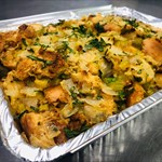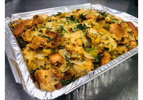 Hearty and delicious cornbread stuffing with sausage, apple, onions, celery, and herbs. This would form a great base for a family meal. It could be paired with chicken or other meat, or simply eaten with gravy, as it is hearty, filling and packed with sausage!