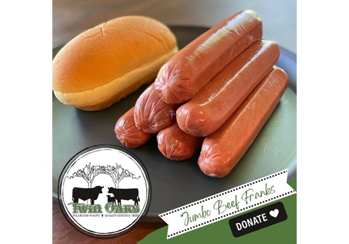 DONATE our Wagyu JUMBO BEEF FRANKS to help the local food pantry's! This product will elevate the classic all-beef hot dog to a delicious new level that will take any backyard 'All-American' BBQ to new heights!